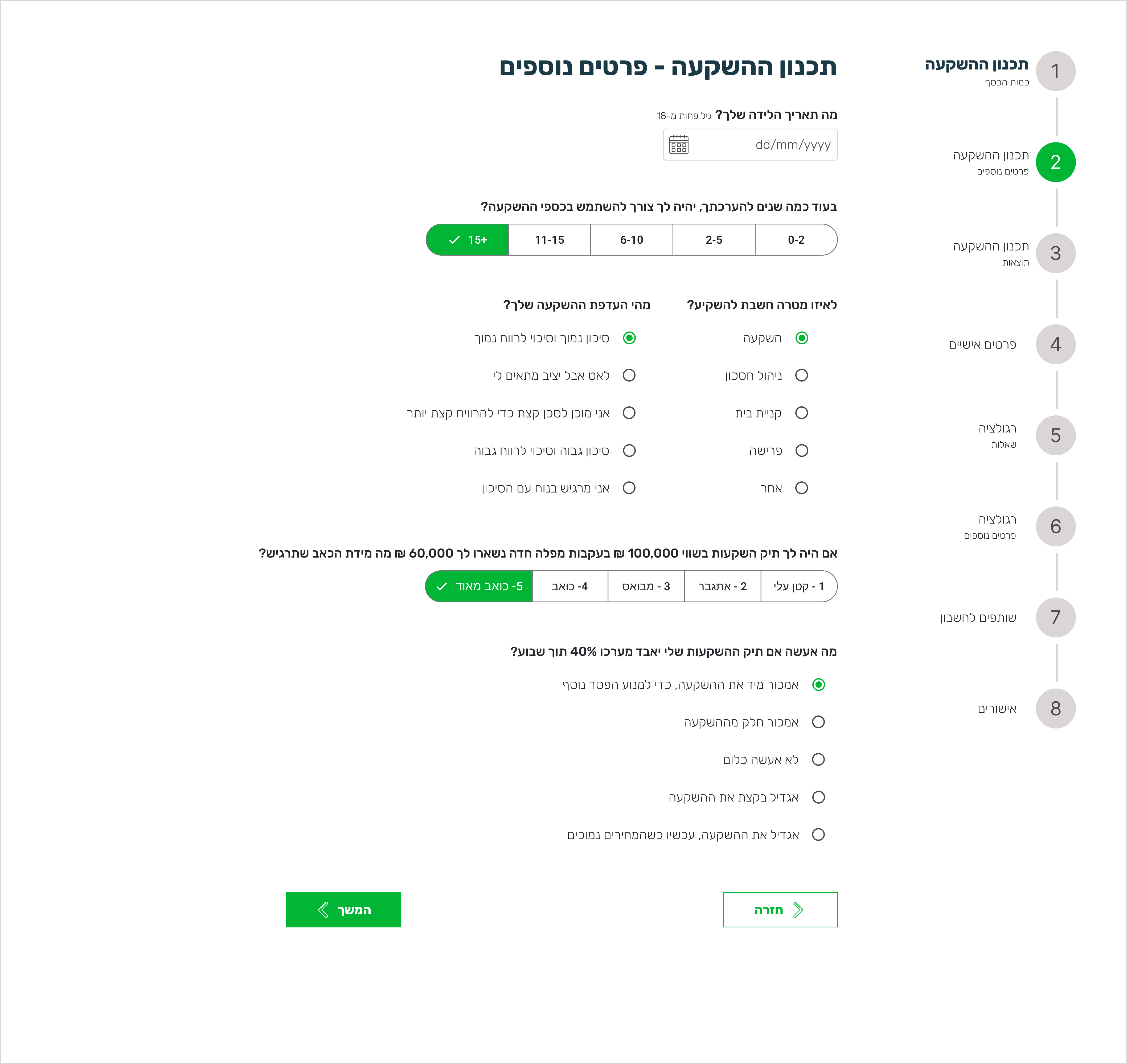 I crafted a structured, intuitive form flow with clear hierarchy and subtle guidance to help users move confidently through complex financial questions.